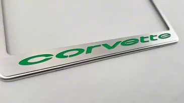 Distinctive Plate Display. The License Plate Frame with Corvette Inlay is a premium accessory designed to elevate the appearance of your vehicle's rear end. This frame adds a polished, performance-inspired touch while securely showcasing your license plate. Its stylish design and quality construction make it an excellent upgrade for Corvette enthusiasts who appreciate fine details.