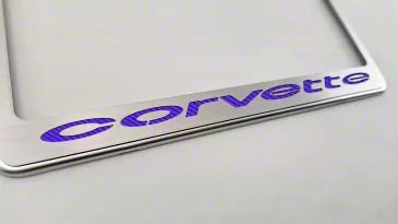 Bold Corvette Styling. Add a touch of custom flair to your classic ride with the License Plate Frame with Corvette Inlay; Purple Carbon Fiber. Designed specifically for 1968–1975 Corvette C3 models, this frame showcases your pride of ownership while enhancing the vehicle’s rear-end styling. The vibrant purple carbon fiber pattern paired with the Corvette script creates a striking look that stands out from ordinary license plate frames.