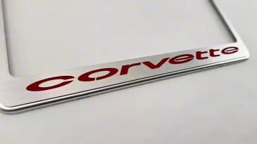 Distinctive Plate Display. The License Plate Frame with Corvette Inlay is a premium accessory designed to elevate the appearance of your vehicle's rear end. This frame adds a polished, performance-inspired touch while securely showcasing your license plate. Its stylish design and quality construction make it an excellent upgrade for Corvette enthusiasts who appreciate fine details.