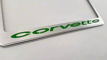 License Plate Frame with Corvette Inlay; Solid Synergy Green (68-75 Corvette C3)Find parts that fit my vehicle