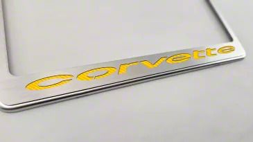 Stylish Corvette Enhancement. The License Plate Frame with Corvette Inlay (Solid Yellow) adds a vibrant, factory-finished accent to your classic Corvette. This high-quality frame showcases "Corvette" lettering in a bold, solid yellow, making it a perfect blend of function and style.