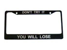 Eckler's no longer carries the License Plate Frame, Don't Try It-You Will Lose, Black Zinc Alloy Metal (53-96 Corvette C1, C2, C3 & C4).