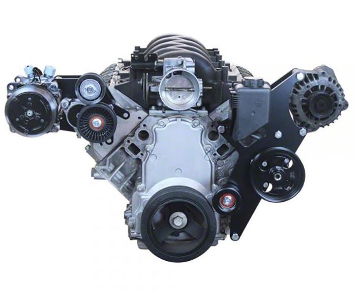 Construction and Features. Built with high-quality billet aluminum brackets, this drive kit ensures maximum strength and durability, capable of withstanding the demands of high-performance LS engines. The precision-engineered design offers direct fitment with Corvette and CTS-V LS engines, making it an excellent choice for achieving a reliable and efficient accessory drive system. The components are designed to fit perfectly, reducing the need for additional modifications during installation.