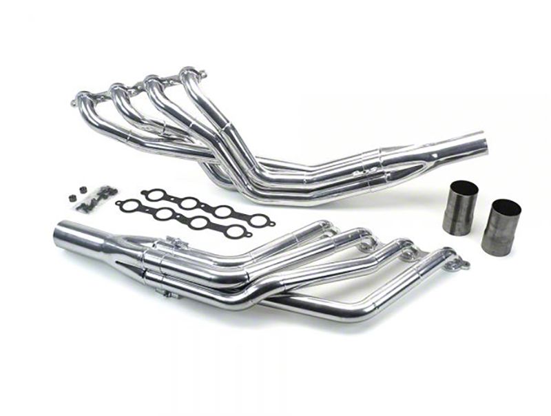 Enhanced Performance Long Tube Headers. These Long Tube Headers are designed to optimize exhaust flow, featuring a 1-7/8 inch primary size stepped to a 2-inch model, providing improved RPM performance while maintaining low and mid-range power. The polished chrome finish and straight-type collector add both style and function to your Corvette C2 or C3.