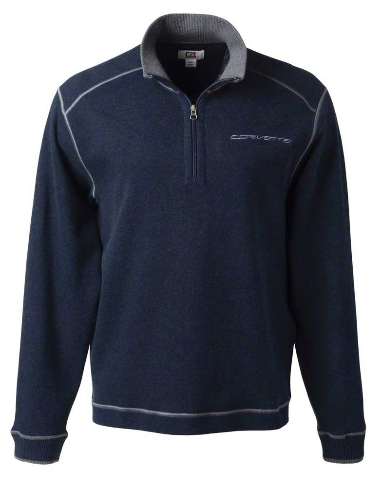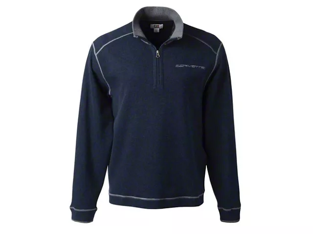 Stylish Men's Fleece Jacket. The Men's Fleece Jacket offers a stylish and comfortable option for Corvette enthusiasts. Featuring a navy blue finish and an embroidered clean white C7 Corvette logo design, this jacket combines fashion with automotive pride. The half-zip design adds a modern touch, making it a versatile addition to your wardrobe.