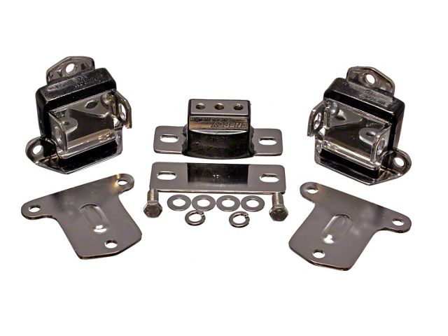 Stability and Appearance. The Motor and Transmission Mounts in Chrome and Black are designed to enhance both the stability and appearance of your 1963-1982 Corvette C2 and C3. These mounts effectively reduce engine and transmission movement, improving vehicle stability and driving comfort. The chrome and black finish adds a stylish touch to your engine bay, complementing the overall look of your Corvette.