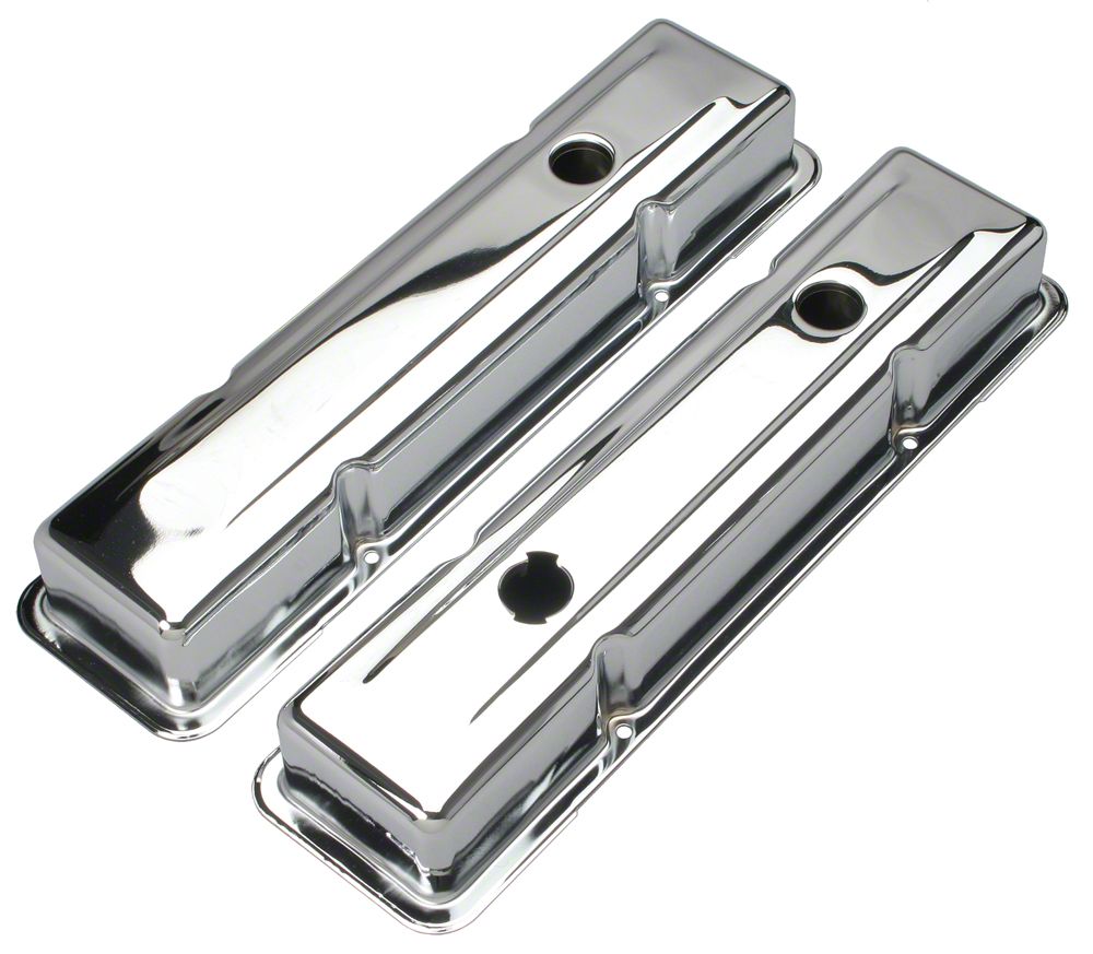 Simple, Durable, and Built to Match Original Specs. Each cover is made from stamped steel and chromed for long-lasting shine. Pre-cut holes for breather caps and PCV fittings make them ready to install on small block V8s, and they’re ideal for restorations or performance builds that stay true to original dimensions. I