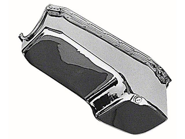 Construction and Appearance. Crafted from high-quality steel, the OEM Style Oil Pan features a durable chrome finish that resists rust and corrosion. The smooth, polished surface enhances the engine bay's look while maintaining strength and durability. Precision welding ensures a leak-free fit.