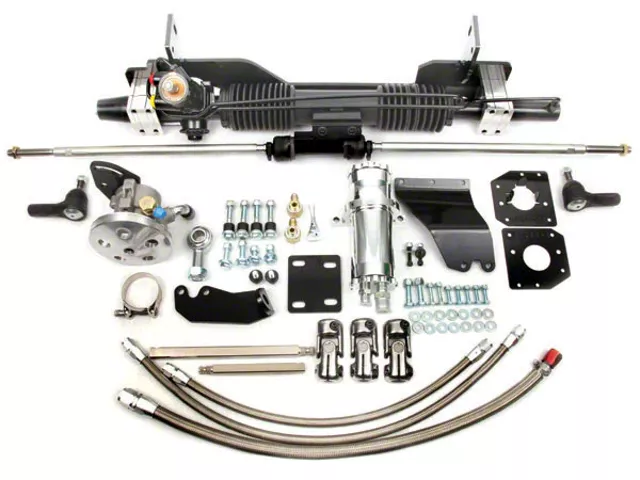 Precision Steering Solution. The Power Rack and Pinion Kit offers reliable, precision steering control for enhanced driving ease and responsiveness. Designed as a rear-steer center take off-style unit, this kit seamlessly integrates with your vehicle's existing suspension, clearing the Z-bar and 4-speed linkage to ensure optimal compatibility with small block motor cars.