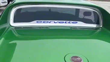 C3 Corvette Coupe Rear Window Frame Polished with 'CORVETTE' Font features a polished finish and a sleek, modern look, it showcases a bold "CORVETTE" font in your choice of striking carbon fiber vinyl inlay colors. It’s the perfect upgrade to give your ride a fresh, custom touch.
