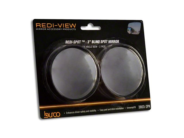 Burco Redi-Spotâ„¢ mirrors are a quick, easy, and functional addition to any side view mirror. Peel and stick on to increase the driver's field of vision and reduce blind spots. Redi-Spotâ„¢ mirrors are available in three sizes and are an instant solution to pesky blind spots!