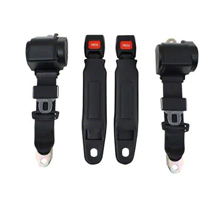 Corvette Seat Belt Set, Single Retractor w/Plastic Push Button Buckle, 1963-1967