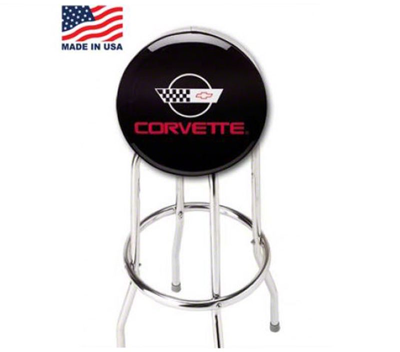 A classic look for either the home or shop. Our C4 Corvette Stool has a 14" wide vinyl swivel seat. Sturdy, comfortable and good-looking, these stools feature chrome legs and stand 18" tall.Tested to hold up to 1600 pounds with no visual damages. Made in the USA.
