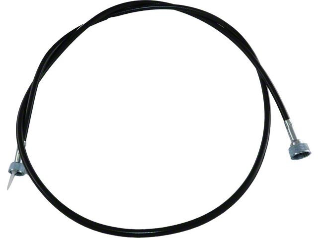 Construction and Appearance. This speedometer cable is crafted from durable materials with a matte black finish, offering both strength and a sleek appearance. With a length of 69 inches, it guarantees long-lasting performance and accurate speedometer readings. The robust construction ensures that the cable maintains its integrity and functionality, providing reliable data transmission from the transmission to the speedometer.