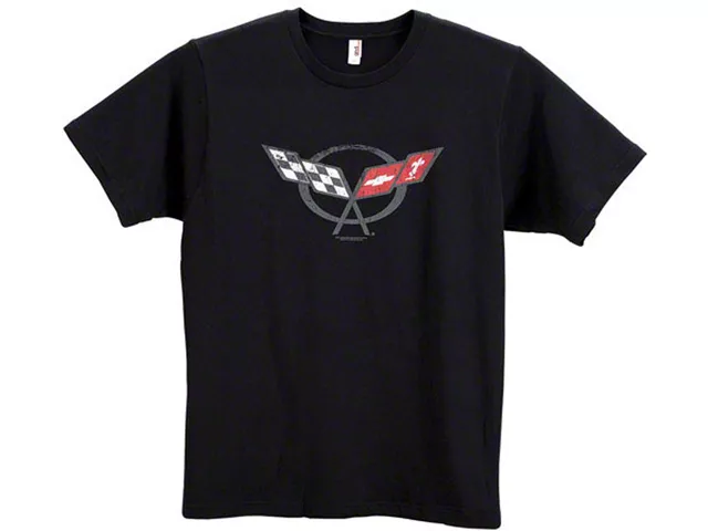 Application. This Corvette T-Shirt with Distressed C5 Logo fits enthusiasts of all generations and makes a great addition to any wardrobe.