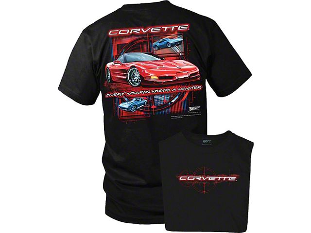 Application. This Adult T-Shirt has a universal fit. It’s a versatile piece of apparel that proudly displays the Corvette Every Weapon graphic, offering both comfort and style for fans of America’s legendary sports car.