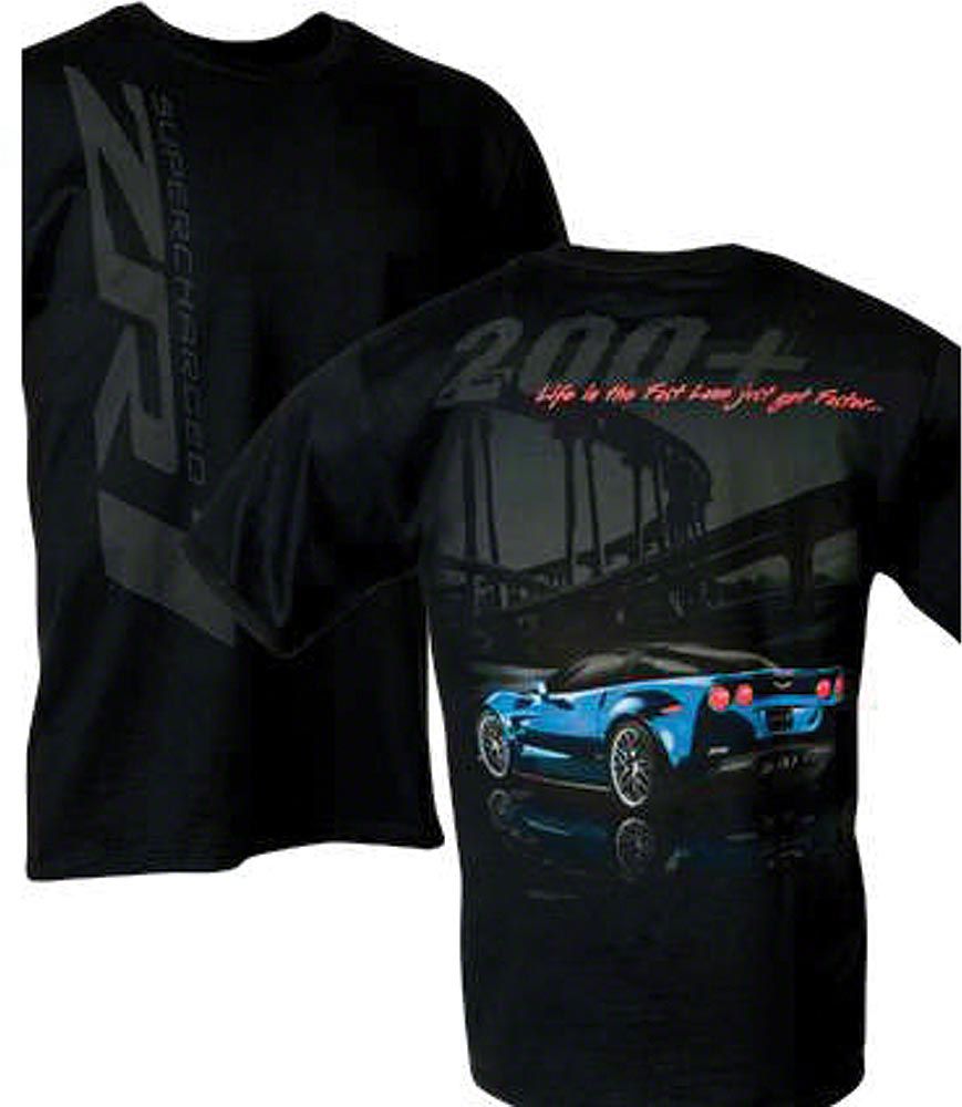 Stylish Corvette Apparel. The Corvette T-Shirt showcases a striking ZR1 Fast Lane design featuring a blue car graphic, making it a perfect choice for enthusiasts. Furthermore, this black T-shirt combines style and comfort, celebrating the iconic Corvette heritage in a modern and eye-catching way.