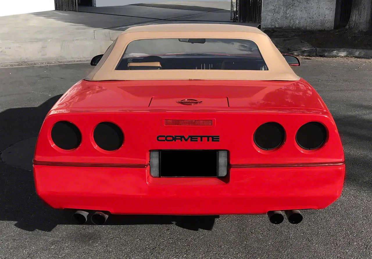 Custom Lighting Enhancement. The 1984-1990 Chevrolet Corvette Taillight Cover, 4 Piece, Carbon Fiber Look, enhances the vehicle�s rear lighting with a sleek, tailored appearance. This product overlays the factory taillight assembly to provide a unique blackout effect, which maintains brightness and visibility when in use, while offering a streamlined aesthetic when off.