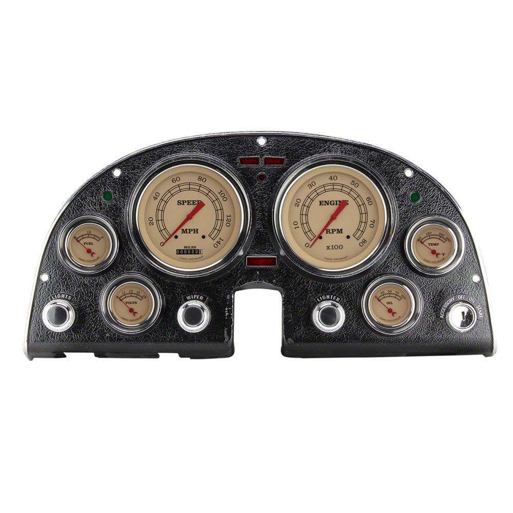 Factory original C2 Corvette mechanical gauges can be highly inaccurate, faded, and even cease to function...leaving you not knowing what the vital functions of your engine are really doing. But, you can do something about that by modernizing with this Classic Instruments Vintage series gauge upgrade kit. Engineered as a complete, direct-fit solution, this upgrade gauge kit includes everything you need to get your Stingray Corvette into the 21st century. A precision machined panel houses accurate pre-wired electronic Vintage series gauges from Classic instruments. This package features a 5" 140 MPH speedometer, and 8,000 RPM tachometer, a 2 1/8" fuel gauge (0-90 ohms), oil pressure, water temperature, and volt gauges. You'll appreciate their retro appearance as well as their pre