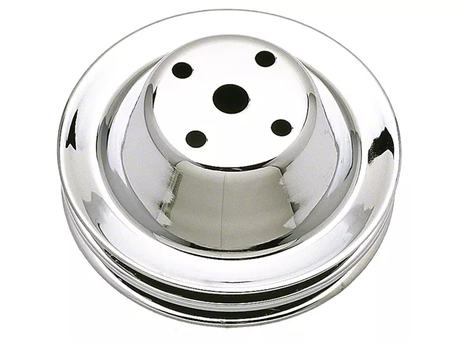 Polished Engine Accessory. The Water Pump Pulley is a stylish and functional upgrade for classic performance engines. Designed for 1976-1985 Chevrolet Corvette C3 and C4 models with long water pump setups, this component ensures proper belt alignment and efficient water pump operation. Its dual-groove configuration supports essential engine accessories while enhancing engine bay aesthetics.