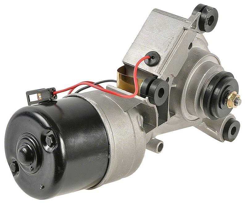 Construction and Appearance. Featuring a matte black and raw metal finish, the wiper motor blends durability with a factory-correct look. It comes equipped with a stock-style pigtail and connector, ensuring a seamless electrical connection that mirrors the original equipment's setup.
