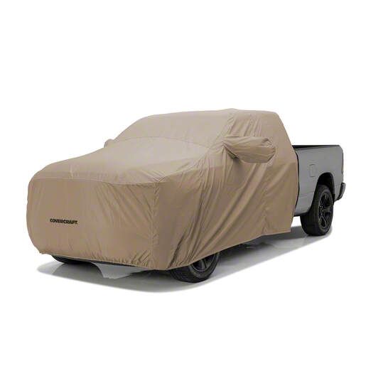 Premium Cab Protection. The Covercraft Ultratect Cab Area Truck Cover in tan offers durable and lightweight coverage designed to shield the cab area of your truck. It provides all-weather defense and adds a layer of privacy between the cab and pickup bed, an essential safeguard against environmental elements and curiosity.