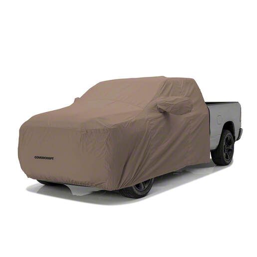 Lightweight Cab Protection. The Covercraft WeatherShield HP Cab Area Truck Cover in Taupe provides essential protection for the cab area of your pickup truck. This cover shields the cab from sun, rain, and snow, helping to preserve the vehicle’s exterior and maintain privacy inside the cab. It is designed to fit precisely between the cab and the pickup bed for optimal coverage.