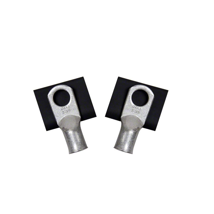 One piece copper crimp/solder rings for 2 gauge battery cable. The crimp ring has a 3/8" hole and includes heat shrink