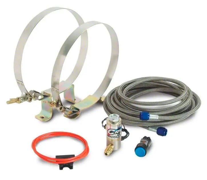 The foundation to every CryO2 system: this kit must be present to utilize CO2 components. This kit includes a cryogenic solenoid valve, all necessary fittings, tank mounting brackets, 14 ft. stainless steel hose, wide open throttle switch, arming switch, and wiring kit. Only one kit is needed to operate all the CO2 components. NOTE: This kit does not include a CO2 tank