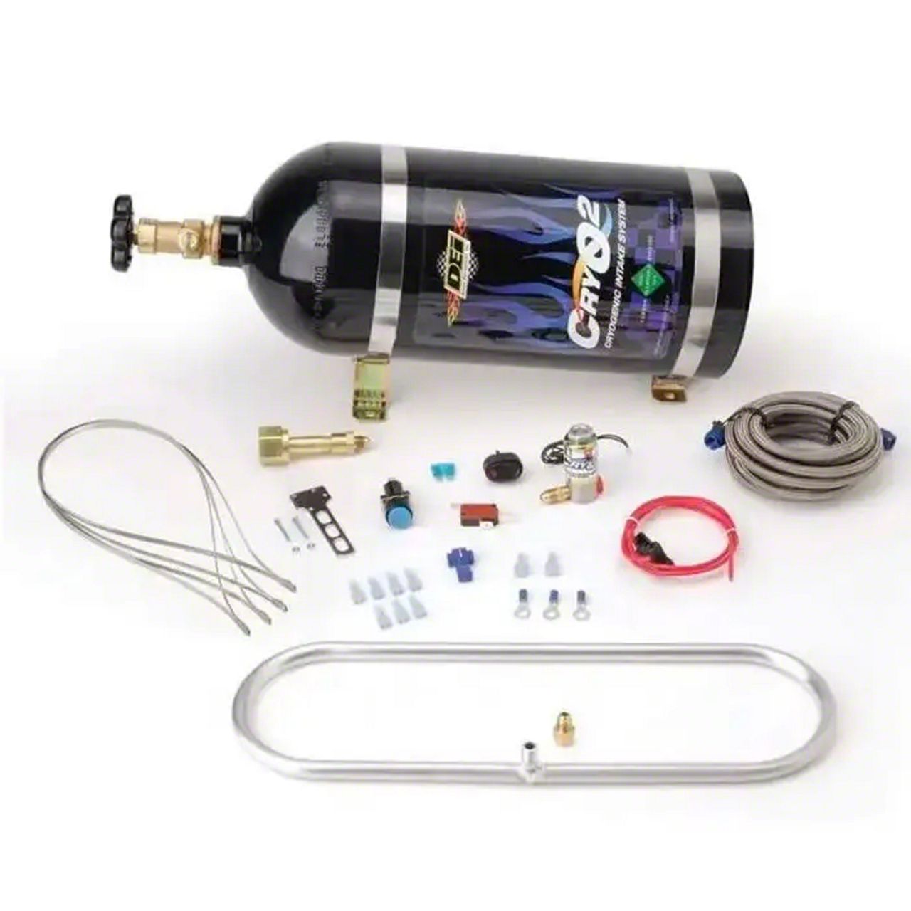 The CryO2 Intercooler Sprayer Kit includes everything needed to enhance the intercooler's thermal transfer ability and improve it’s efficiency by as much as 50%. Kit includes 10 lb. tank and brackets, Cryogenic solenoid valve, 14 ft. stainless steel braided supply line, Arming, activation, and WOT switches, All nece