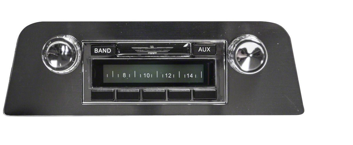 Custom Autosound's USA-230 is an excellent choice for classic car or truck enthusiasts looking for a more affordable radio without sacrificing quality electronics and a classic stereo look. It has been designed to fit in the stock dash without any modifications required. The USA-230 has the same appearance and all of the features offered in our USA-630 model simply without USB port, iPod dock and CD changer control. The USA-230 does provide an auxiliary input which can connect to iPods, iPhones, satellite radio tuners or any other device with a headphone jack. It also boasts 4 Channel RCA pre-outs and a digital display with electronic tuner, 16 station pre-sets and a 4-way fader.