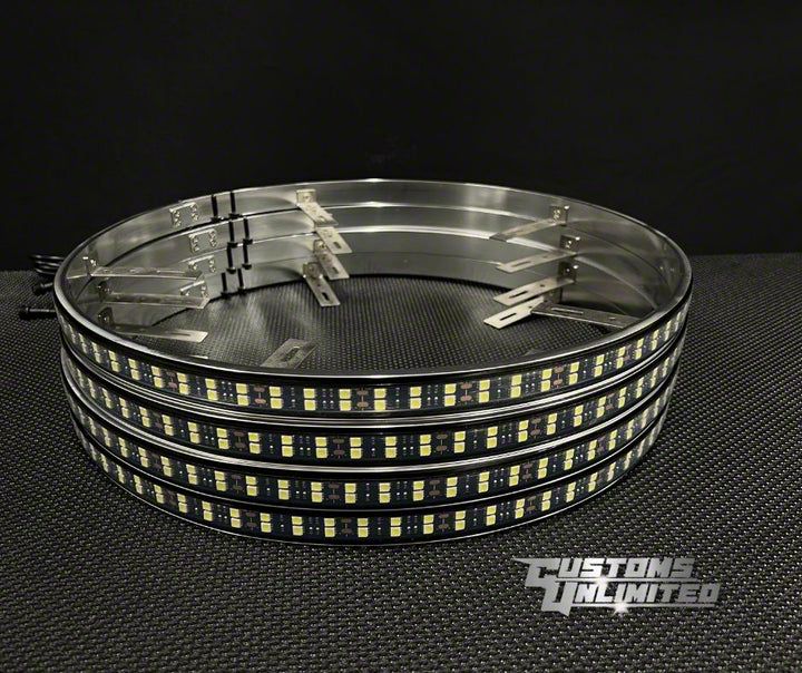 15" Wheel Lights are now available! 15" wheel lights are designed for cars, trucks, SUVs, and vehicles with wheels smaller than 20". They have to fit around your brake system, so keep that in mind when selecting your size. We recommend having all measurements, make, and model of your vehicle ready before check out. If you have any questions on measurements, please reach out to