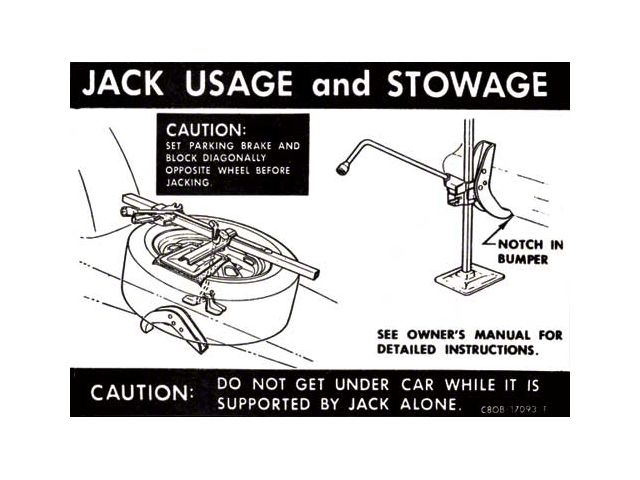 Decal - Jack Instructions - Fairlane Sedan & Convertible - S,tyled Steel Wheels