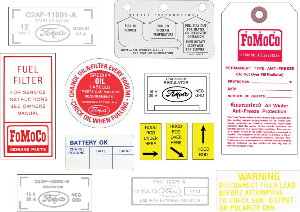 If you want all the available decals for your classic Ford and don't want to search our catalog to make a big list, we have just the kit for you, complete decal kits are now available to save you time and money. Kits have been researched for each model listed and are offered at a discounted price from individual decal purchase. We have painstakingly researched each model listed and created kits of all the available decals for your model and packaged them at a discounted price. These decal kits include correct concours quality decals in factory shapes and colors. Kit contents vary greatly depending on your model and have between eight to twenty decals depending on vehicle options and model year. Please note: some decals that are original on your car may not be available, we offer all the