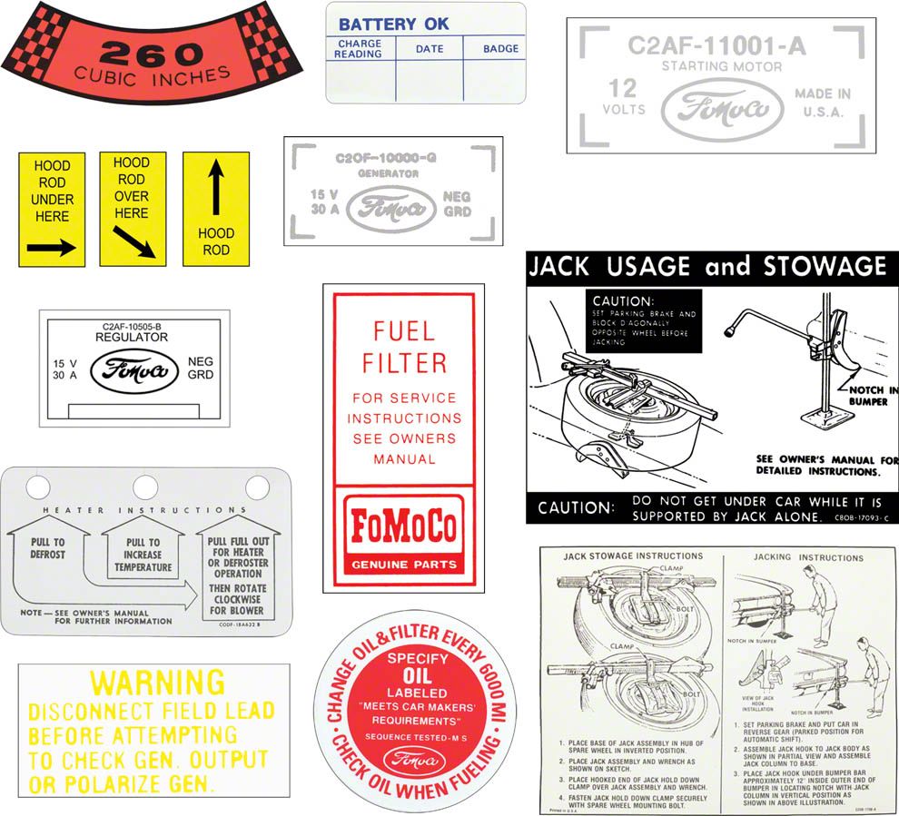 If you want all the available decals for your classic Ford and don't want to search our catalog to make a big list, we have just the kit for you, complete decal kits are now available to save you time and money. Kits have been researched for each model listed and are offered at a discounted price from individual decal purchase. We have painstakingly researched each model listed and created kits of all the available decals for your model and packaged them at a discounted price. These decal kits include correct concours quality decals in factory shapes and colors. Kit contents vary greatly depending on your model and have between eight to twenty decals depending on vehicle options and model year. Please note: some decals that are original on your car may not be available, we offer all the
