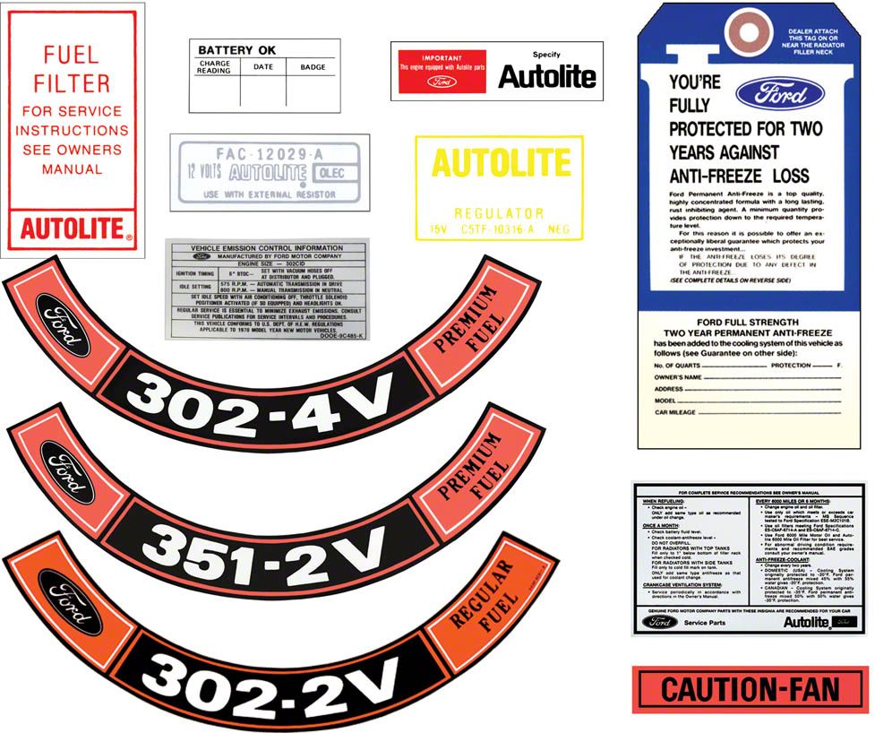 If you want all the available decals for your classic Ford and don't want to search our catalog to make a big list, we have just the kit for you, complete decal kits are now available to save you time and money. Kits have been researched for each model listed and are offered at a discounted price from individual decal purchase. We have painstakingly researched each model listed and created kits of all the available decals for your model and packaged them at a discounted price. These decal kits include correct concours quality decals in factory shapes and colors. Kit contents vary greatly depending on your model and have between eight to twenty decals depending on vehicle options and model year. Please note: some decals that are original on your car may not be available, we offer all the