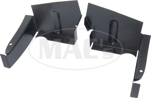 These left and right deck panel pocket covers are heavy gauge stamped steel, just as Ford made them. They fit at each side of the tool tray to cover the bumper mounting arm passages. After spot-welding, Ford originally added black sealer compound to all seams to keep out dust and moisture. Rust and impact has ruined many over the years so these are a welcome solution.