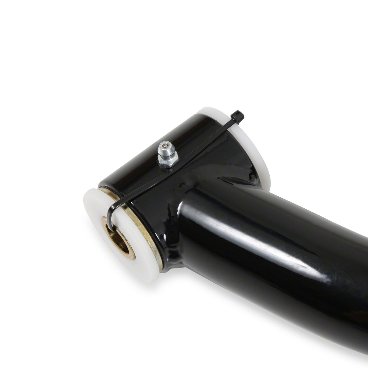 - Lower control arms feature additional positive caster with Delrin bushings and a gloss black powder coat finish