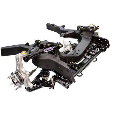 The new Detroit Speed C2/C3 SPEEDRAY™ front suspension has no compromises and exclusive Detroit Speed suspension geometry for superior handling and ride quality. It is available as a 100% bolt-on system or with a small amount of fabrication for a competition coilover option that allows faster spring changes. The system features 'Detroit Tuned' quick ratio power rack and pinion steering along with forged in the USA Detroit Speed aluminum uprights. The bolt-on powder coated cradle assembly improves suspension geometry, provides rigid mounting for the rack and pinion, and includes integrated tie down eyelets. DSE/JRi 'Detroit Tuned' Coilover shocks/springs allow for spring rate tuning and ride height adjustment. It also includes a splined sway bar with aluminum arms, composite bushings, powder coated tubular upper and lower control arms with Delrin™ bushings, forged offset upper control arm mounting brackets with caster tuner bushings to optimize suspension geometry and provide clearance for Gen V LT4 engines. The kit also includes Torrington bearings and a spanner tool for easy spring height adjustments. The body and engine do not need to be removed for installation of the SPEEDRAY™ front suspension. Single Adjustable Shock: Includes all features of base shock with 'Detroit Tuned' valving plus installed rebound adjustment with the simple turn of a knob while providing excellent ride quality on the street. Spring Rate: 650lbs/in Spring Free Length: 8in