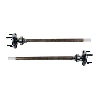 Detroit Speed, Inc. 31 spline axles are built to withstand extreme use. Engineered for high performance street, track events and autocross. Using high quality alloy steel, Induction heat treated and magnafluxed to insure quality and reliability. Using 1/2"-20 by 3" studs in GM (5 x 4-3/4") and Ford (5 x 4-1/2") bolt patterns. They come with Torino flange bearings already installed on axle. Sold as a pair (2) Lug Nuts not included.
