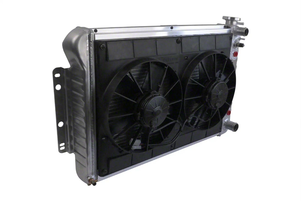 DeWitts™ Direct Fit® LS Swap Aluminum Radiators are engineered to simplify the installation of your LS Engine swap. This custom package is designed to fit the original mounting conditions and provide you with engine matching hose connections. Our standard LS configuration has both inlet and outlet on the passenger side. Each package includes an electric fan with the temperature switch mounted in the end tank. We also include a steam line connection, custom billet DeWitts™ radiator cap, and complete electrical wiring kit.