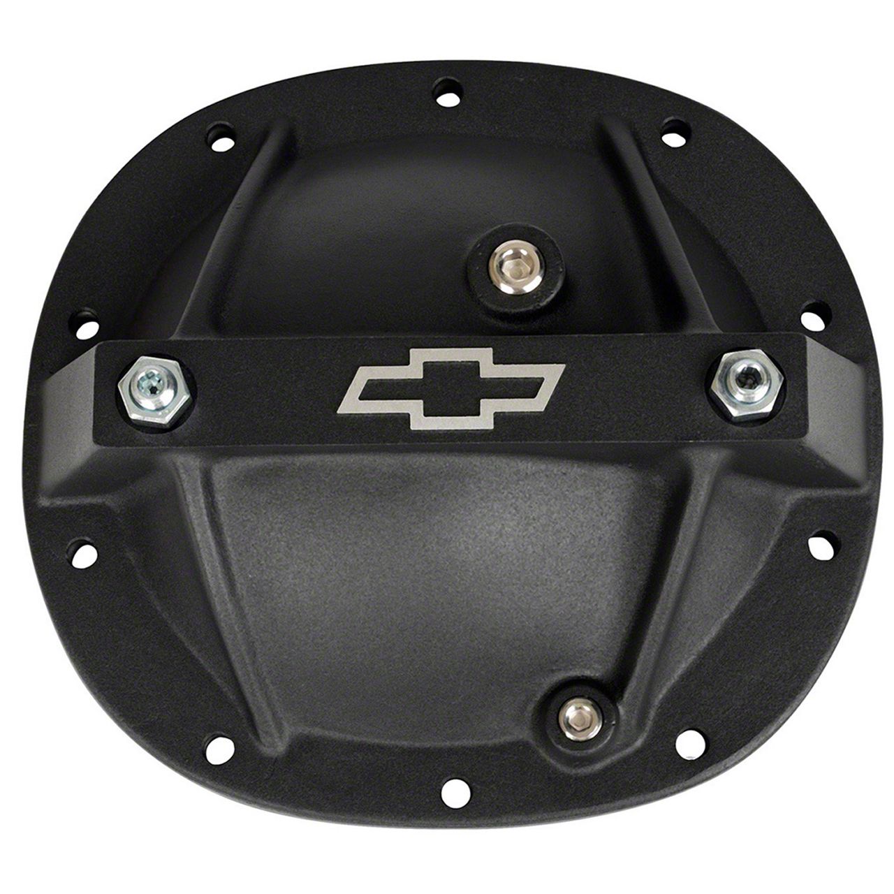 Differential Cover; Bowtie Emblem; Fits GM 7.5 Rear Ends; Made From High-Quality Aluminum; Black Crinkle Finish; Features 2 Bolts to Stabilize Bearing Main Caps, Magnetic Drain Plug and Grade 8 Mounting Bolts. Sold Individually
