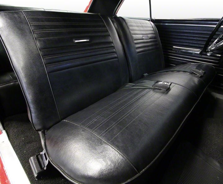 The seat cover you choose can make or break your restoration. Eckler's Chevelle offers exceptional reproduction seat covers by Distinctive Industries. We compared the components offered by the leading automotive upholstery manufactures and selected each piece based on how close the quality, workmanship, correctness, grain and color matched the original 1967 Chevelle upholstery. All our Distinctive Industries interiors are proudly made in the USA using correct grain vinyl and factory colors. The dielectrically heat sealed pleats give a crisp, showroom fresh look. The stitching is also the correct size and spacing. Choose only the best for your interior restoration. Choose seat covers from Distinctive Industries and Eckler's Chevelle. Note: Delivered directly from the manufacturer. Some colo