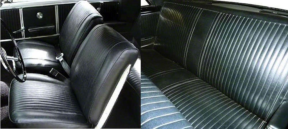 The seat cover you choose can make or break your restoration. Eckler's Chevelle offers exceptional reproduction seat covers by Distinctive Industries. We compared the components offered by the leading automotive upholstery manufactures and selected each piece based on how close the quality, workmanship, correctness, grain and color matched the original 1964 Chevelle upholstery. All our Distinctive Industries interiors are proudly made in the USA using correct grain vinyl and factory colors. The dielectrically heat sealed pleats give a crisp, showroom fresh look. The stitching is also the correct size and spacing. Choose only the best for your interior restoration. Choose seat covers from Distinctive Industries and Eckler's Chevelle. Note: Delivered directly from the manufacturer. Some c