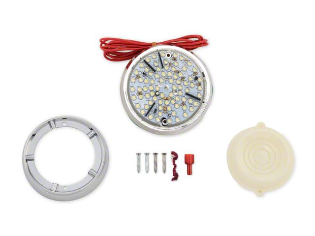 This assembly comes with a bright chrome base and brighter than normal bulb to really improve lighting inside the car. Instructions are included on how to easily add the assembly. Includes reproduction dome lamp lens, chrome bezel, as well as the mounting hardware and electrical connectors are included to make this a quick and simple project.