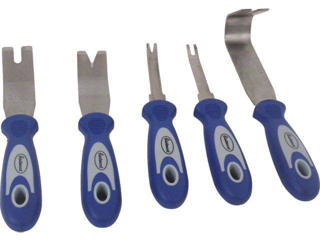 Here's a rugged trim removal set that won't easily bend. Featuring polished stainless steel heat-treated blades & non-slip handles, these tools also have a wide flat fulcrum point to keep from pinching painted surfaces. Perfect for most of your interior trim removal needs.