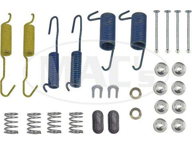New combo kits include all the springs, pins, shims and rings to properly rebuild your brakes. Complete kit, manufactured in the USA. Application is as follows: 63/ 65 Falcon/ Ranchero v8, 66/ 71 Ranchero, 66/ 70 1/2 Falcon v8 & wagons, 62/ 67 Fairlane, 68/71 Torino/ Fairlane, 64/ 65 Comet v8, 66/ 67 Comet, 68/ 71 Montego, 62/ 63 Meteor. 1 kit required per axle (2 kits required for vehicle)