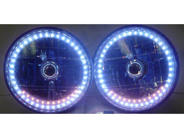7 Round White Diamond White Halo Headlight W/Signal