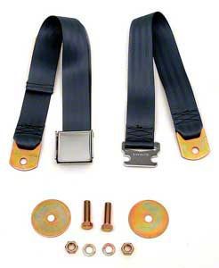This replacement Chevy seat belt looks similar to the original belts used in the early Early Chevys. A simple chrome buckle and new black webbing enhances any classic Chevy interior from 1949-1954. Floor mounting hardware is provided for proper and safe installation. Installation of this Chevy seat belt does require minor drilling. Each belt completes one passenger. The rear belt is 60" overall length to accommodate from small to large individuals.