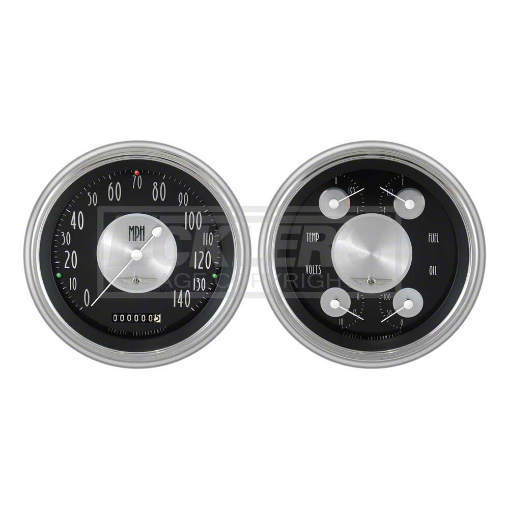 Custom gauges let you update your 1951 or 1952 Chevy interior in an afternoon. Eckler's Early Chevy offers a variety of gauge options designed to help you do just that. The American Tradition series gauge set from Classic Instruments feature a black face with chrome pointers. The 140 mph speedometer has a built in odometer and the quad gauge gives you fuel level, oil pressure, water temperature and volt levels at a glance. Lenses, bezels and senders are included. Let Eckler's Early Chevy help you give your 1951 or 1952 Chevrolet's interior a mini makeover with custom gauge options from Classic Instruments.